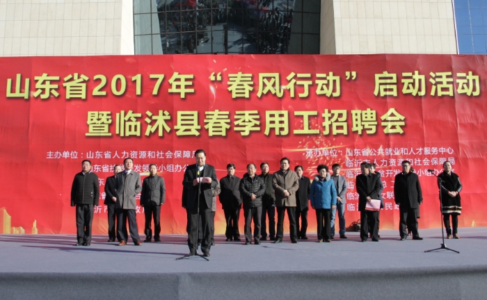 2017年1月20日,華盛江泉集團(tuán)人力資源部相關(guān)負(fù)責(zé)人參加了由省人社廳、省扶貧辦、省總工會(huì)、省婦聯(lián)和臨沂市人民政府聯(lián)合舉辦的山東省2017年“春風(fēng)行動(dòng)”啟動(dòng)活動(dòng)暨臨沂市臨沭縣春季用工招聘會(huì)。出席啟動(dòng)儀式的領(lǐng)導(dǎo)有省人社廳黨組副書記、副廳長(zhǎng)夏魯青,省總工會(huì)副主席趙立群,省婦聯(lián)副巡視員盛巧俐,省公共就業(yè)和人才服務(wù)中心黨委書記、主任趙振國(guó),省扶貧辦行業(yè)社會(huì)組副組長(zhǎng)王又磊,省人社廳相關(guān)處室的領(lǐng)導(dǎo),市委常委、副市長(zhǎng)尹長(zhǎng)友,市人社局黨組書記、局長(zhǎng)邢軍,市總工會(huì)副主席張濤,市婦聯(lián)副主席孫靜,市人社局黨組成員、市人力資源開(kāi)發(fā)服務(wù)管理辦公室主任王君川,市人社局黨組成員、副局長(zhǎng)彭向榮等。省內(nèi)300多家企業(yè)參加了此次活動(dòng)。